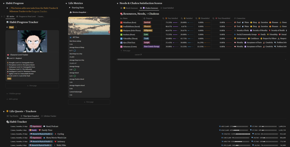 - Maslow's Hierarchy of Needs Assessment Journal (capture monthly baseline and identify problem areas to work on in life)