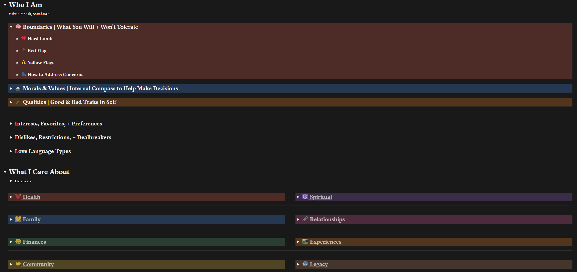 - Life Foundation Journal (build a bucket list for what you desire to experience in the 8 pillars of life - Mental/Physical Health, Family, Relationships, Spiritual, Lifestyle + Hobbies, Finances + Income, Community + Business, Legacy)