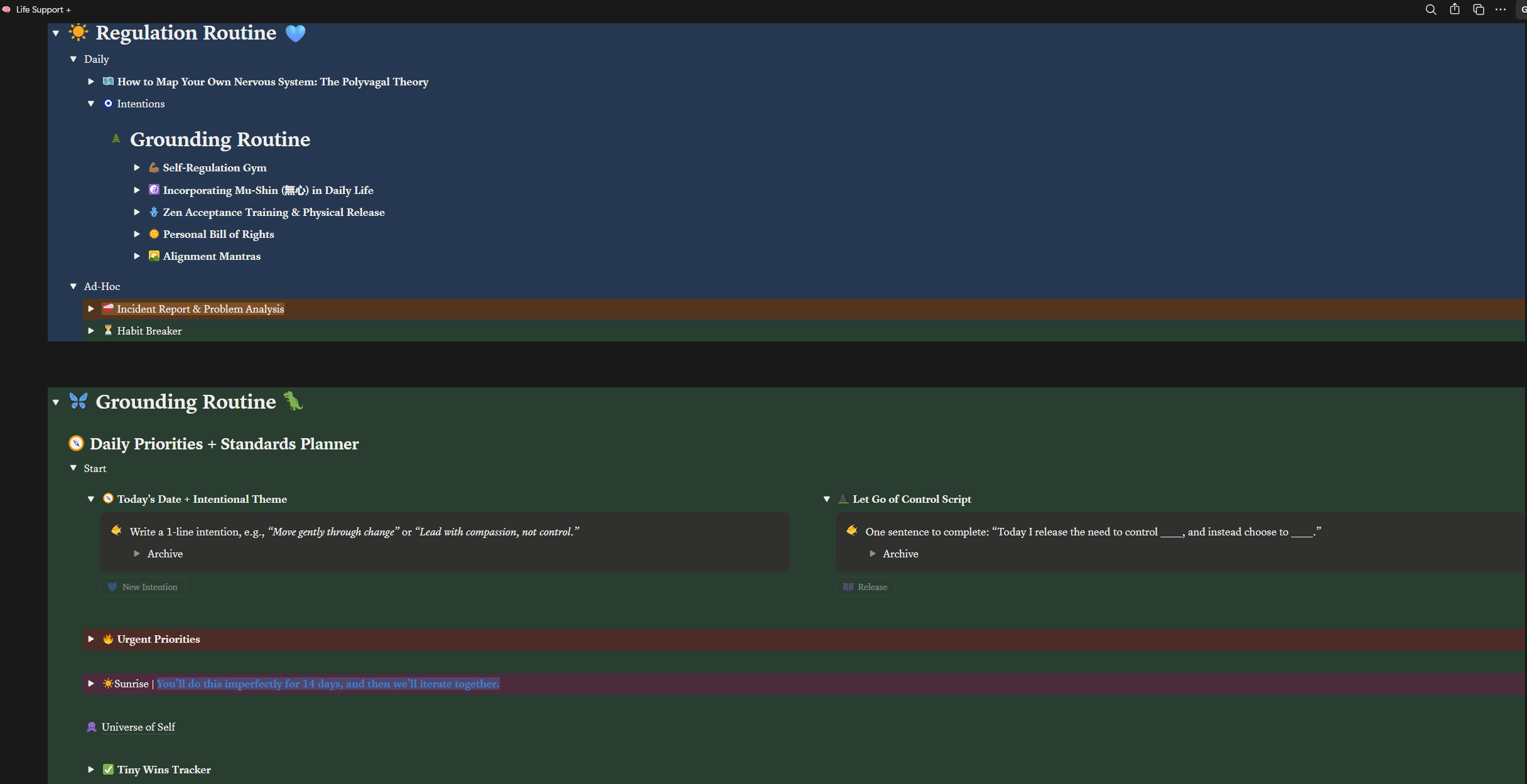 Life can feel overwhelming when you're managing debilitating mental health symptoms. Some days, just keeping track of your thoughts, emotions, and priorities feels like an uphill battle. That’s why I created the Life Support + Assistant—a structured yet flexible system inside Notion to help you regain clarity, build stability, and create a life that feels right for you.
